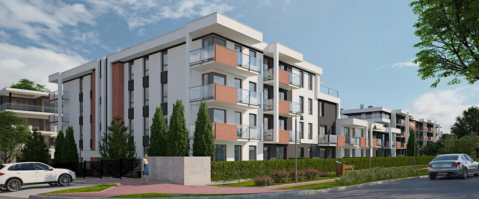 W ramach inwestycji powstaje nowoczesny budynek wielorodzinny z wydzielonymi architektonicznie segmentami A i B do których prowadzą 4 klatki schodowe. Oferujemy 76 lokali mieszkalnych (w tym część apartamentów o powierzchni ponad 70 m2) wyposażonych w funkcjonalne balkony lub przestronne tarasy i komórkami lokatorskimi w większości zlokalizowanymi na kondygnacji mieszkania. Garaż podziemny to 88 miejsc postojowych, które zapewnią mieszkańcom wygodne parkowanie i możliwość łatwego przemieszczenia się windą na piętro swojego mieszkania. Każdy lokal zapewnione ma przynajmniej jedno miejsce postojowe, a dla części apartamentów możliwy jest zakup dodatkowego miejsca postojowego.